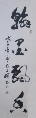 一、搁笔真神韵,峰端印我行。文诗画草美,硕成篆峥嵘。