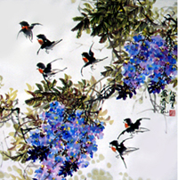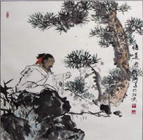 我之说上面一段话,是从读杜征麟的画作产生的感想引发出来的。我与杜征麟是北京外国语大学校友(我留苏前)。去年初,他邀请我到北京外国语大学去给大学生们讲西方印象派美术作品欣赏,我见到了他的绘画作品。他的画是有新意的,有个人面貌,不雷同他人,他在前人创造的基础上,力图走出一条适合于他个性表现的新路来,也就是说有自己的见识和艺术追求。他自幼喜爱中国书画艺术,曾得到多位在中国画创作上有修养的著名画家指导,80年代初即有作品发表于《北京日报》、《北京晚报》和《中国教育报》。他较全面地掌握了中国画的技巧。在对大自然的体验和感悟中,以及在勤奋的艺术实践中逐渐领悟和体味了中国画的奥秘。我觉得,他领悟和体味的要点是用笔墨写意、传情。中国画的笔墨趣味和情调固然很重要,但只有当这些笔墨的趣味和情调为创造画面的意境、传达思想和感情服务时,才能发挥出最大的审美效果。