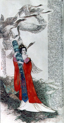 人物画《金陵十二钗》,花鸟画《国花争艳》等在国内及东南亚展出。
