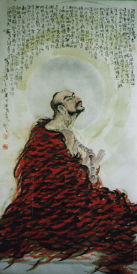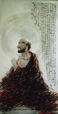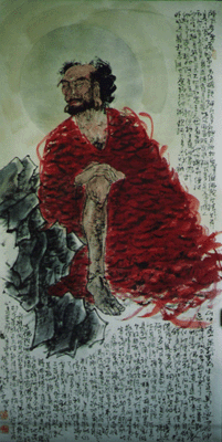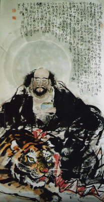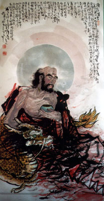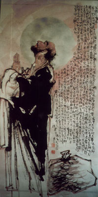 92年,全国酒文化节展出了他的巨幅《劝君更饮一杯酒,西出阳关无故人》。同年8月,他的巨幅人物画《铁拐李》被文化部出版的《中华画苑掇英大画册》收藏。