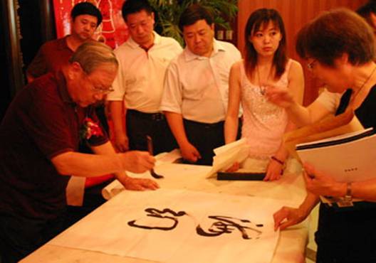 曾经为革命征战南北的老红军王定烈、黄继书、李培基;担任军队高级领导职务的张序三中将,和一生越洋过海、跋涉神州的海军副司令员陈明山、李春明将军;老八路徐起、沈甸之、王福让等年逾八旬壮心不已,在他们手下的诗句笔墨间,到处浸蕴着他们 60 年的艰难困苦和生死卓绝,蕴含着老战士 60 年的浴血奋战和流血牺牲,记述了中华民族从危亡到救国,从牺牲到胜利;苦难、拼杀、无畏、捐躯;痛苦与喜悦,牺牲与永存,战争与和平,自然与期望,无不润满到方尺寸格之间。空军战士书法家朱海军满载着对共和国的热爱,对老一辈革命家的敬仰,精心创作了 三米 长卷,书上了一份继承革命传统、弘扬中华文化的卫国情怀。这些出自将士豪情笔下的书画作品,如长龙跃山,银蛇伏溪;诗词、精句、赠言、古语;大篆、小楷、行书、狂草;花鸟、山水、浓墨、细笔,令人满目生辉,情真意切。在联谊会上张序三激情歌唱九一八小调《我的家在东北松花江上》;于官堂的《延安颂》,《黄河颂》献艺战友;多年来萦绕在耳边的传统革命歌曲《南泥湾》、《到敌人后方去》、《大刀向鬼子头上砍去》等老战士喜爱的经历着战争炮火生命的歌曲,振人心、荡时代,无不滋润着老战士的革命心田。联谊会的场面隆重热烈,欢畅喜悦,真是烈日炎炎,融不消百名将士书画联谊的热情;热风习习,拂不去抗战胜利 60 周年的伟大胜
