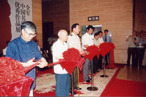 参加展览的有中国人民解放军政治部主任刘永治,中国文联党组副书记覃志刚,中国文联副主席李牧,总政宣传部部长吴昌德,总政宣传部艺术局局长左青,中国文联国内联络部主任赵长青,中国美协副主席冯远、中国美协党组书记刘大为,著名书法家欧阳中石、李铎、总政直工部部长、中国书协副主席申万胜,中国书协党组书记、驻会副主席张飙等领导,中央各大媒体记者,军内外书法家,解放军和武警部队官兵约2000余人参加了展览开幕式,开幕式由总政宣传部部长吴昌德主持