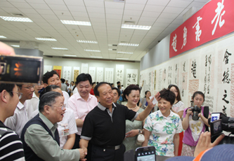 人民艺术网讯: 为纪念北京中韩书画家联谊会成立20周年,6月1日,由北京中韩书画家联谊会主办,北京世纪名人国际书画院承办的“第二十回书画名家作品国际联展”在北京中国人民革命军事博物馆开幕。中国书法家协会顾问、北京中韩书画家联谊会名誉会长李铎,于振武上将、吴双战上将,景学勤中将,全国政协原副秘书长、世纪名人国际书画院院长张道诚,国家行政学院副院长周文彰,军事博物馆政委孟世强将军,中国楹联学会会长孟繁锦,北京市文联党组副书记、副主席张光一出席开幕式并剪裁。中国书协、中国美协历届理事赵立凡、张清智 丁谦、白秋晨 朱守道、张坤山、赵国联、潘传贤、颜振卿等500余人出席活动。全国青联委员、北京中韩书画家联谊会副会长兼秘书长汪碧刚主持开幕式。
