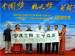 人民艺术网讯:九月九日上午在中国航天城由中国航天科技集团国防科技生产力促进中心,中国文化产业系统工程研究院,中国书画家联谊会,中华民族爱国工程研究院,中国八一将星书画院,人民艺术网共同发起 “中国梦、航天梦、英雄梦”的启动仪式在航天城正式拉开序幕。