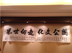 四、关公文化有普世价值。一是关公文化的本质内涵“忠、义、仁、勇、信”,具有时代意义和普世价值,已成为中华民族核心价值观的重要組成内容。特别在市场经济条件下,“正义”与“诚信”更显得犹为重要。“读好书、说好话、行好事、做好人”的关公精神,不但中国需要,而且世界也需要。纵观当今世界乱世之源,正义和诚信缺失是一个重要原因。把关公文化推向世界,占领世界道德文化高地,应有其现实必要性。希望武圣关公与文圣孔子一样,终将被联合国科教文組织认定为当之无愧的“世界历史文化名人”。关公作为正义和诚信的化身,乃是中华民族的一种骄傲。宣传关公精神,是当代中国人的一种文化自觉。关公文化展組委会,希望有更多的志愿者共同来做这件好事。