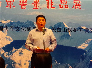中共长白山保护开发区工委书记、管委会主任谢忠岩在仪式上致辞。谢忠岩说,此次展览是长白山保护开发区文化发展史上具有开创意义的一次文化盛会,也是全面展现我国将军书画创作的一次艺术盛会。长白山作为东北亚地区的地理高地、生态高地和文化高地,既是松花江、图们江、鸭绿江的“自然之源”,也是发祥北方民族、孕育关东文化的“文化之源”、代表吉林文化的“标志性符号”、中华文明的重要发源。近年来,长白山管委会确立了“建设世界名山,打造文化名城”的总体目标,坚持生态立山、文化立山,始终把保护好长白山生物多样性和生态安全作为各项工作的第一前提,深入发掘长白山能够为人类所做出的全部贡献,全力弘扬长白山自然、历史、文化所传承的极具影响力和吸引力的生态文明。并积极促进长白山文化的回归、弘扬、传承和发展,坚持把文化融入生态保护、开发建设的各领域和全过程,相继成立了长白山文联、长白山书法家协会、美术家协会、长白山书画院等30多家文化组织,举办了首届长白山国际生态论坛、长白山画派美术作品展等大型文化活动。2014年,还将通过举办长白山国际生态论坛、“塑说长白山——中国当代雕塑作品展”,加快长白山“大学城”、文化创意产业园、宝马古城等文化项目建设进度,着力推进“四大优势产业”的文化产业建设进程,长白山文化已经成为推进区域科学发展、加快发展的强大内生动力。此次书画作品展的成功举办,特别是能够邀请到百位将军倾情参与,不仅是长白山的莫大荣幸,也是我们在培育践行社会主义核心价值观、建设文化强国过程中的一道亮丽风景。希望通过“长白礼赞”书画作品展出活动,让越来越多的人领略到长白山多元文化内涵,更好地了解长白山、走进长白山。