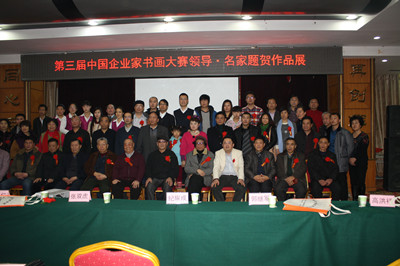 人民艺术网讯:12月27日由中国企业书画艺术协会主办的“携手同发展·共圆中国梦”第三届中国企业家书画大赛领导、名家作品展暨新闻发布会在北京龙脉大酒店隆重举行。旨在将中国文化和企业文化向世界做推广,延续企业书画艺术家和传统书画艺术家的友谊交流文化。原公安部消防局政委谢模乾将军,海军某部原政委祁荣祥将军,酒泉卫星发射基地政委刘克仁,原总政保卫部部长张双虎,原北京军区政治部副主任纪耀成,中国企业书画艺术协会执行主席沈韦良,秘书长梁卫萍,世界胡氏宗亲秘书长胡树萌,济南弘墨瀚翔文化传播有限公司董事长高洪祥,中国五老展览馆馆长傅永强,中国民族书画院吴马,中国老子书画院副院长齐国元,中国书法研究院副院长江竞瑞,中国老子书画院袁少海,中原企业文化研究院秘书长郭继军,中央电视台心连心艺术团现场总导演张玉来,北京电视台张元元,人民艺术家协会黄兆华,中国老子画院王鸿斌,东方职业技术学院教授黄玉堂,天坛书画院院长马天唯,毛主席特型演员赵国良,中国书法艺术家协会主席马永安等各界嘉宾及来自央视网、人民网、新华网等媒体代表一百余人欢聚一堂,全场笔歌墨舞,共镶文化盛举。