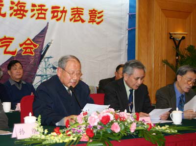 军事科学院原政委中将、航海指挥部总指挥张序三(前左一)在会上作总结报告