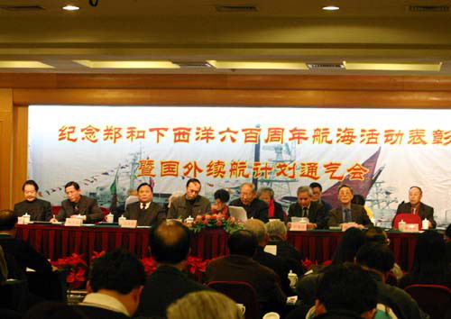 军事科学院原政委、中将、航海指挥部总指挥张序三,国家纪念郑和下西洋600周年领导小组办公室副主任孙继,世界华侨华人社团联合总会秘书长、航海指挥部副总指挥任兴亮,海军装备部原部长、少将、航海指挥部副总指挥郑明,海军装备部原总工程师、少将、航海指挥部副总指挥李方来,台湾民主自治同盟中央委员会名誉副主席田富达,中国太平洋学会会长张海峰,世界华侨华人社团联合总会副会长、宋庆龄基金会副主席袁守启等领导出席会议并在主席台前排就座。