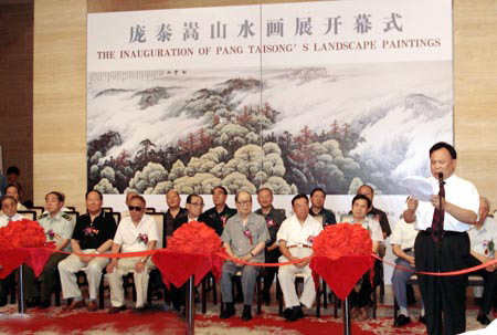 画展由世界华侨华人社团联合总会秘书长任兴亮主持,中国美协艺委会副主任、著名画家李宝林,著名作家、空军文艺创作室主任韩静霆将军,总政治部宣传部副部长张西南将军分别为开幕式致辞。画展作者庞泰嵩致答谢词。