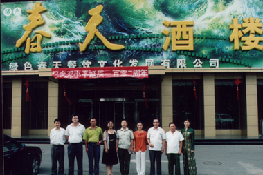 人民艺术网8月22日讯:8月22日在邓小平同志诞辰102周年纪念日之际,人民艺术网首席执行官黄鹂,总经理仁春应邀与卢奇(著名表演艺术家、邓小平的扮演者)、王德昌老师(周总理的扮演者)、黄莺女士(国母宋庆龄的扮演者),并特邀来自内蒙通辽市科尔沁草原的李宝进先生,以及热爱并崇敬领袖邓小平的文人墨客、商家志士相聚“春天酒楼”,庆祝邓小平同志诞辰102周年纪念。 轻轻的,淡淡的,熟悉的那歌、那曲、那声音:《春天的故事》在这里飘然响起…… 那位世纪的老人往日的声音在这里的每一个角落里久久回荡……——我是人民的儿子,我深深爱着这片土地! 他,就是我们敬爱的邓小平主席! 他,就是领着我们奔向小康的舵手! 今天是他老人家102周年诞辰日,在这个充满怀念与回顾的特色《春天酒楼》里,董事长戴宝明先生无不精心地为来宾们制造了极具特色的纪念场所。前来参加聚会的艺术家们,在领袖诞辰日上各抒情怀:卢奇老师挥毫泼墨,王德昌老师即兴赋诗并带着对伟人无比崇敬的心情高声朗诵:春天酒楼,汇聚挚友;小平功高,独领风流!整个聚会高潮迭起,洋溢着浓浓的情怀……庆祝会在黄莺老师的一曲《春天的故事》歌声中拉下帷幕!