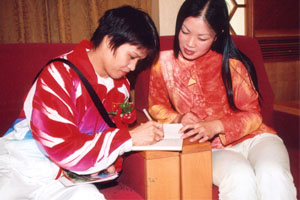 与中国排球队队长孙晋芳