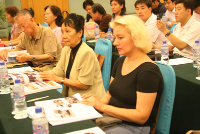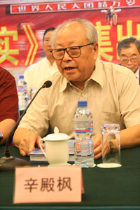 文集出版首发式由世侨会秘书长任兴亮主持,他首先请参会的全体人士起立,向在中国人民抗日战争和世界反法西斯战争中英勇献身的烈士和死难同胞们默哀致敬。他讲到,在举国上下隆重纪念抗日战争胜利 60 周年,纪念世界反法西斯战争胜利 60 周年的光辉时刻,我们同全国各族人民一样隆重纪念这一光辉节日。在这庄严的时刻,重温 60 年前正义与邪恶、光明与黑暗的珠死博斗,中国人民伟大的抗日战争,展望中华民族复兴与发展,展望改革开放的中国取得的辉煌而震惊世界的伟大成就,我们更加信心百倍,无比自豪。正是在这样的形势下,今天由北京航空联谊会、世界华侨华人社团联合总会邀请各位领导、各位嘉宾,共同举行《中苏美空军抗日空战纪实》文集出版首发式,是一项具有历史意义和现实意义的活动